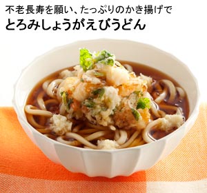 うどんはたっぷりの熱湯で固めにゆで、ざるにとって水気をきる。器に盛りつけて