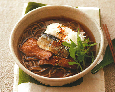 そばはゆでてざるにとり、冷水で洗って水気をきる。煮たてためんつゆに加え、さっと温める。 |